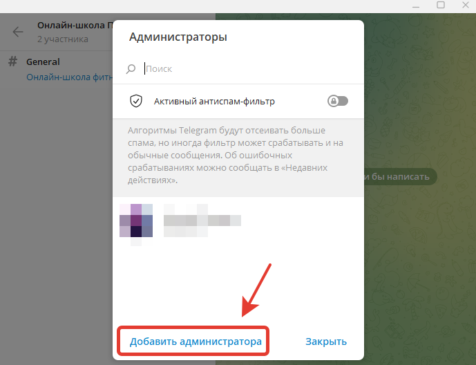 Далее, нужно будет добавить бота в роли администратора в эту группу.