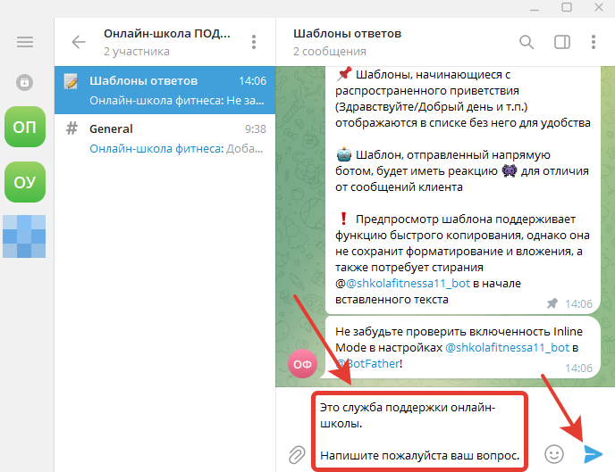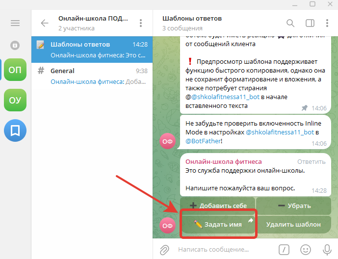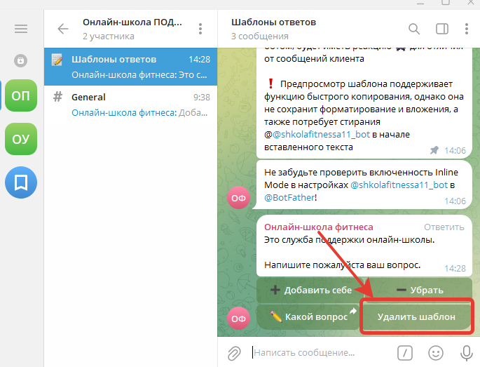 И в другой группе Telgram (группы для обработки сообщений клиентов) появится новая тема Шаблоны ответов