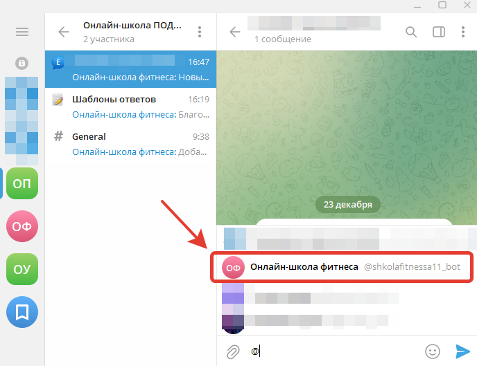 Чтобы добавить шаблон при ответе в чате с клиентом необходимо ввести символ @, далее выбрать своего бота в списке