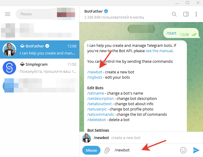 Шаг 1. Запуск бота Simplegram