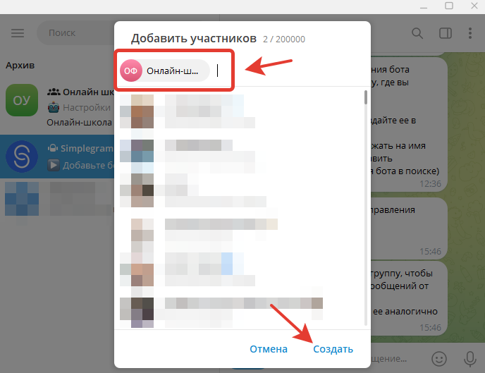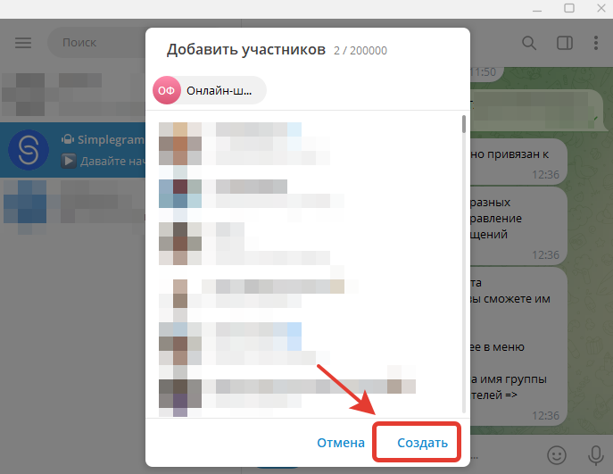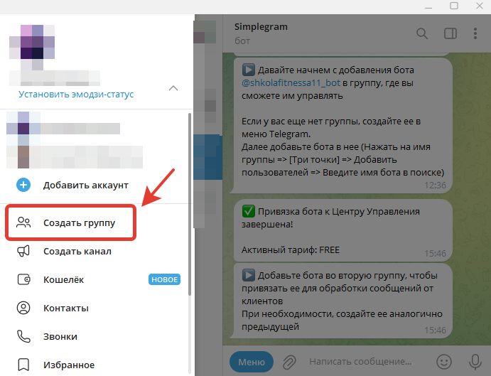 Теперь необходимо создать еще одну группу в Telegram.