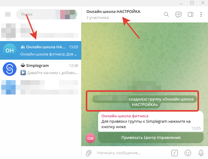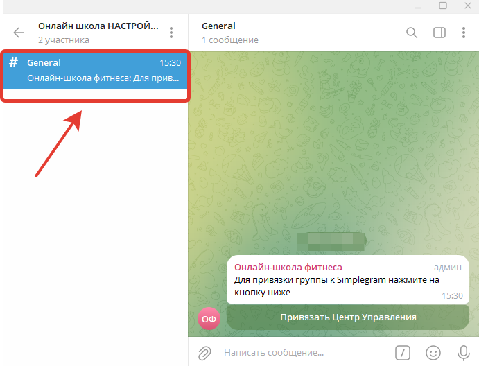 Теперь необходимо сделать привязку центра управления к своей группе в Telegram.
