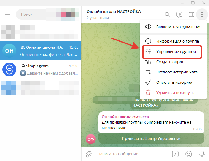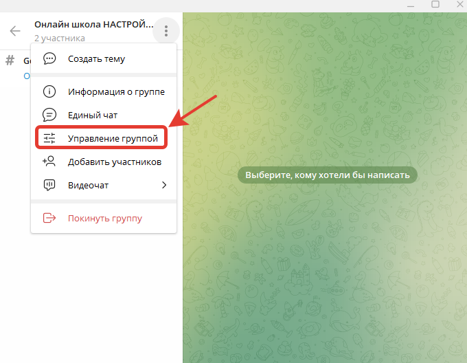 - Далее, переходим в раздел Управление группой