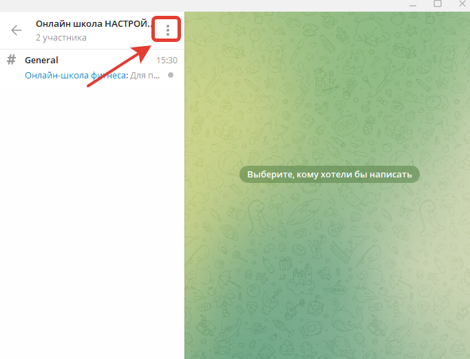 - Переходим в управление группы - для этого нужно нажать на три точки в меню справа от названия группы