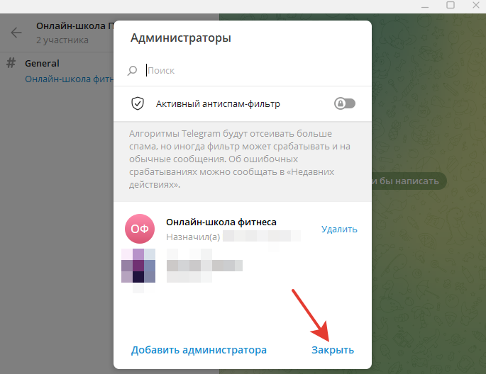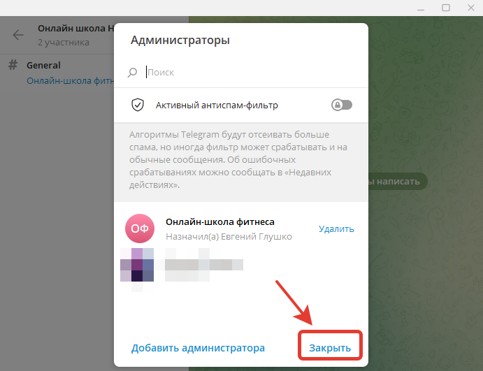 Таким образом, добавили бота в роли администратора в свою вторую группу Telegram.