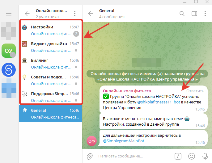 После этого появятся дополнительные разделы (темы) в этой группе Telegram