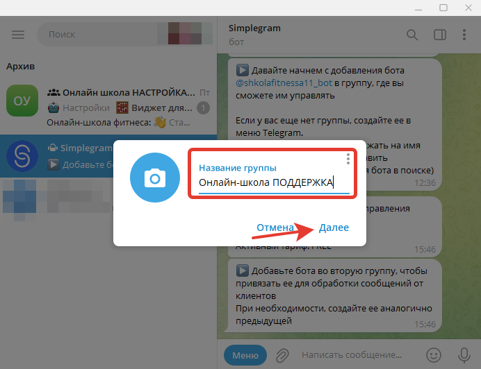 Шаг 4. Создание группы в Telegram
