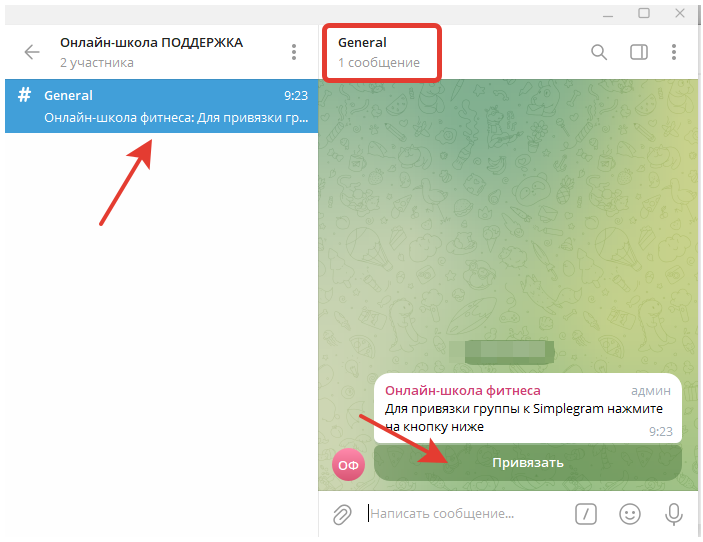 Для этого нужно перейти в свою группу в раздел General и нажать кнопку Привязать