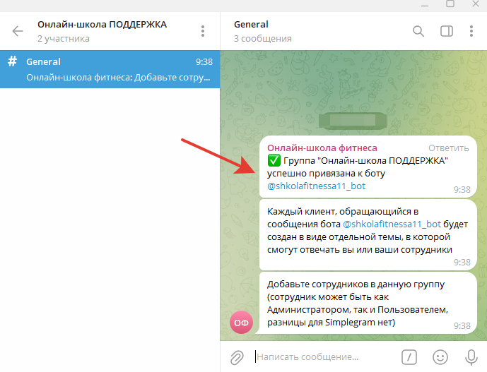 Таким образом, выполнили привязку второй группы к боту для обработки сообщений от клиентов